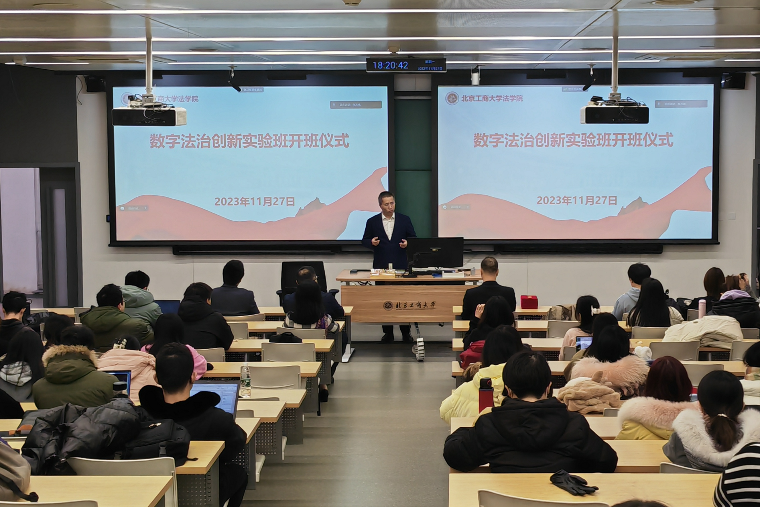 佟麗華作開(kāi)班動(dòng)員。他利用五個(gè)小故事為同學(xué)們形象解釋了數(shù)字法治發(fā)展的普遍性和重要性,同時(shí)明確了法律研究回應(yīng)數(shù)字化發(fā)展的急迫性。他講道,實(shí)驗(yàn)班“創(chuàng)新”的動(dòng)力源自學(xué)員之間的相互探討。他希望學(xué)員們利用好實(shí)驗(yàn)班這一平臺(tái),將自身塑造成順應(yīng)時(shí)代發(fā)展需求的人才。
